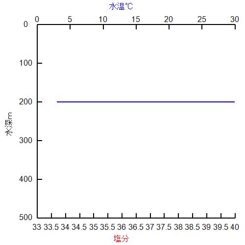 海洋観測の鉛直グラフ 2017年07月19日1216 測点st26 更新日時:2017年7月20日 08:15 水温・塩分鉛直グラフ 密度鉛直グラフ 観測日時:2017/07/19 12:16:00観測点名:st26観測場所:緯度 **-**.***、経度 ***-**.***